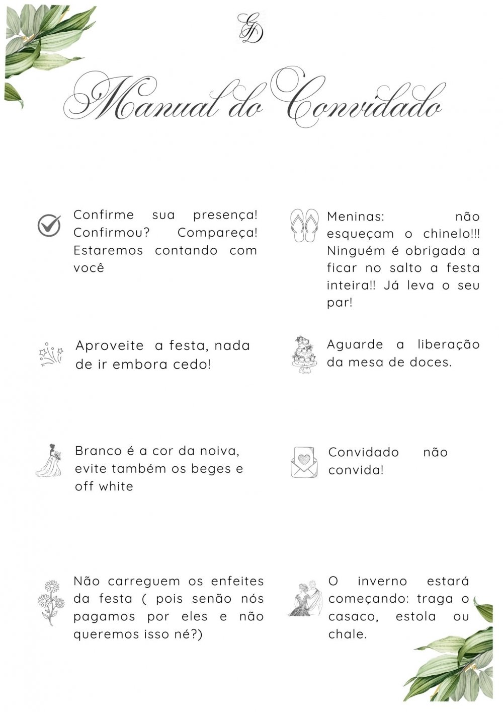 Acreditamos em um amor leve, verdadeiro e cheio de parceria. Um amor que não é perfeito, mas é real. Que escolhe ficar, crescer e comemorar todos os dias. Nosso casamento será exatamente assim: cheio de significado, emoção, boas energias e muitos motivos para sorrir (e dançar!).